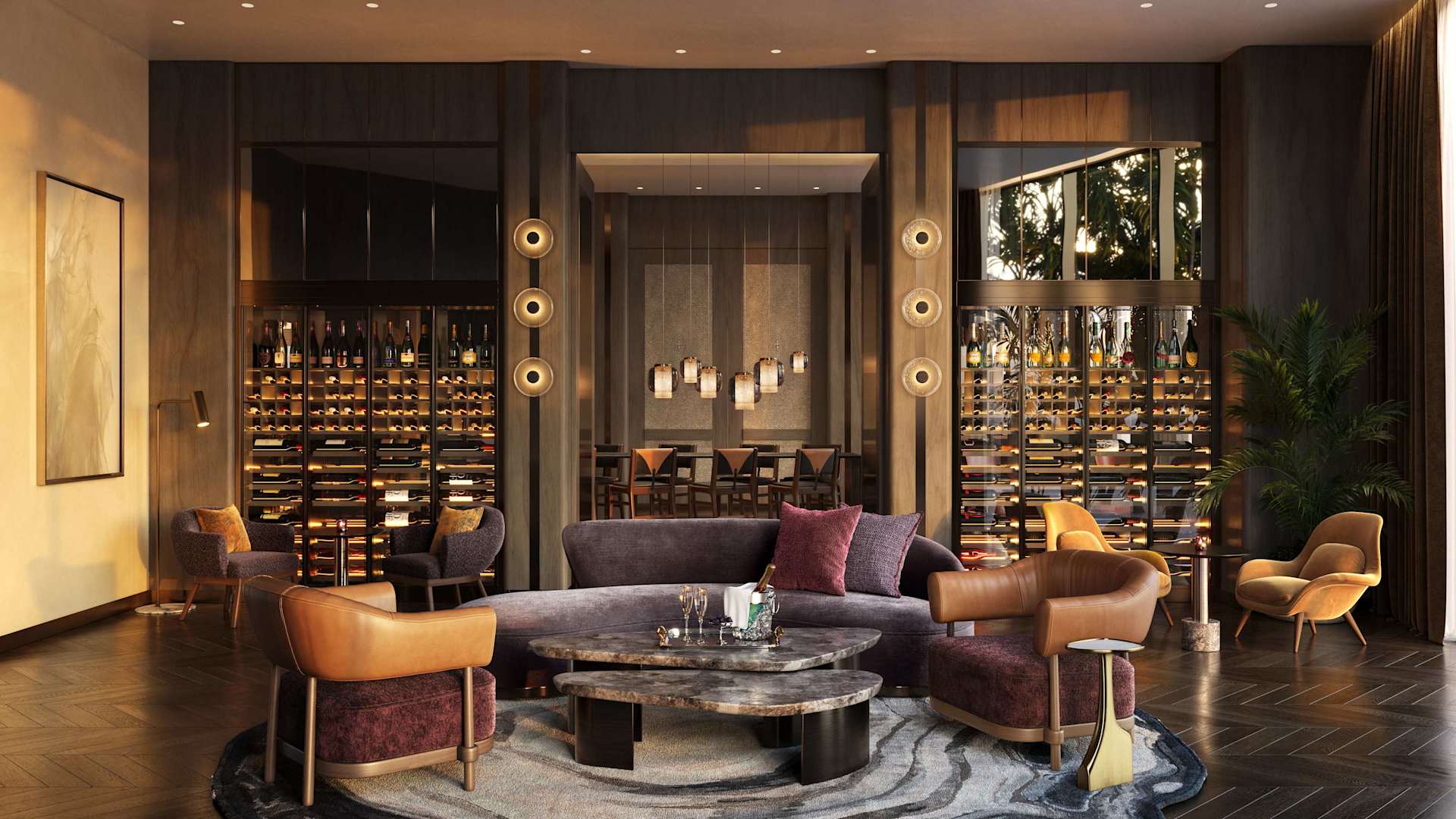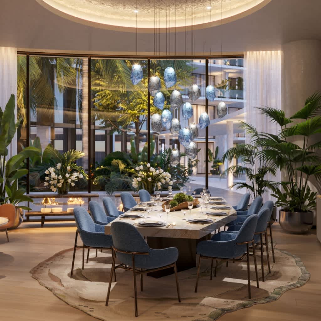 Lagoon with shaded pavilions, private cabanas (a limited number available for purchase), Card Room & Library, kids and teens rooms, sports simulator lounge, screening room, boardroom and private offices, garden pavilions with outdoor kitchens, firepits, bocce courts, fully staffed lobby lounge with mail and package rooms.